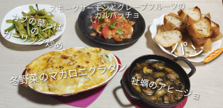 グラタンとアヒージョ、カルパッチョ